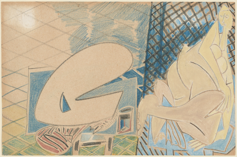 Ceri Richards (1903 – 1971), Seated Nude with Palette, 1951, gouache and wax crayon on paper, acquired 2023. © Estate of Ceri Richards. All rights reserved, DACS 2025.